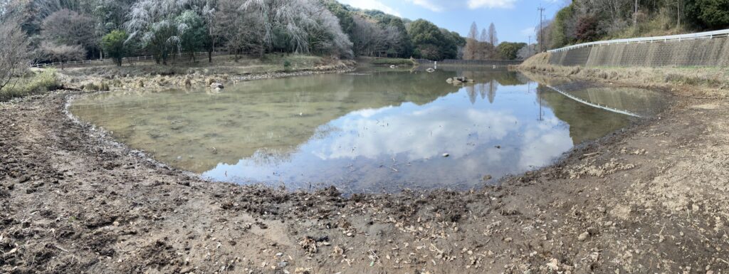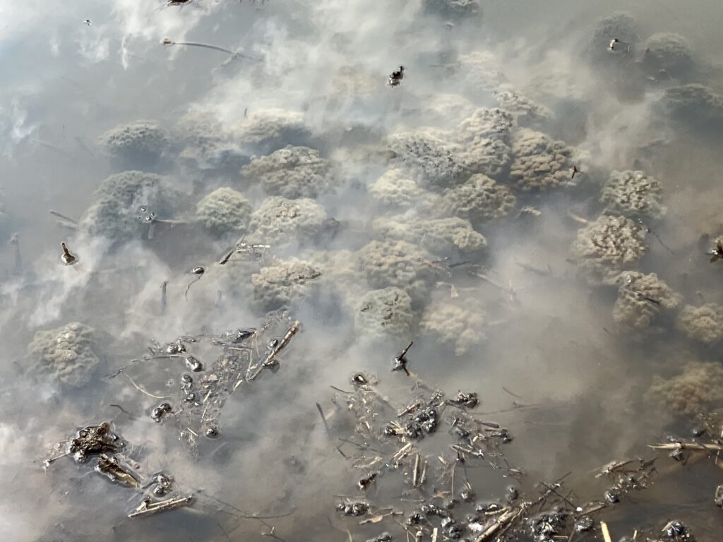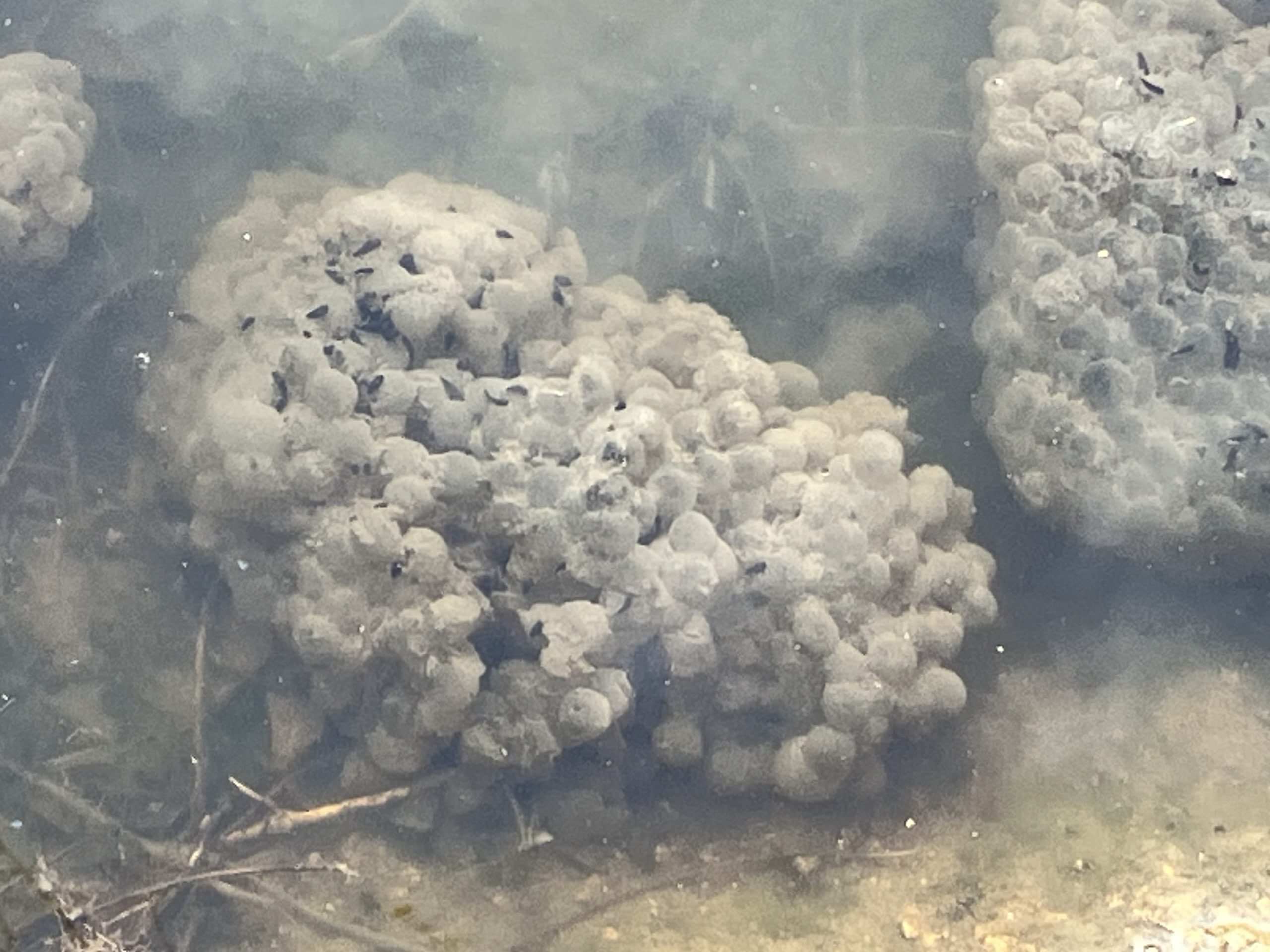 続いてサクラ池へ。先日奥の土砂を除去したあたり一面に、かなりの数の卵塊が確認できました。環境が整った場所を、カエルたちはしっかり見つけているんですね🥚✨